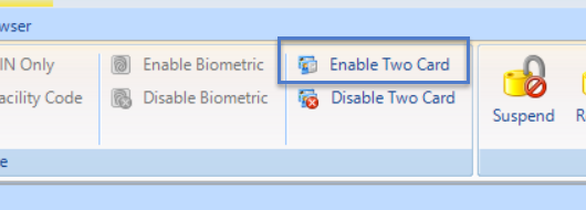 - You can click the Disable Card Rule icon in the ribbon bar at any time to put the reader back to requiring just one valid card read.
