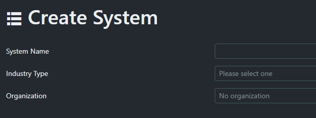 - The create new system screen will appear.