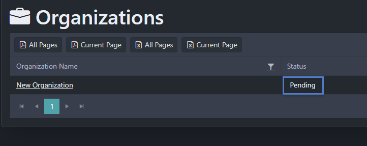 Once the Organization is created you will see that the status is shows as Pending.