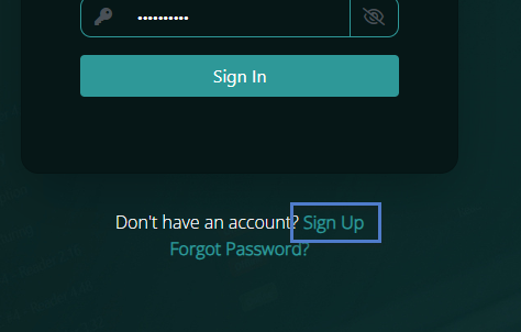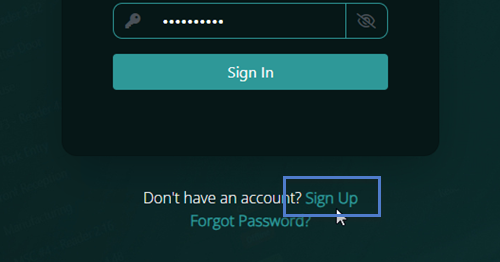 - Beneath the log in fields click on the Sign Up button.