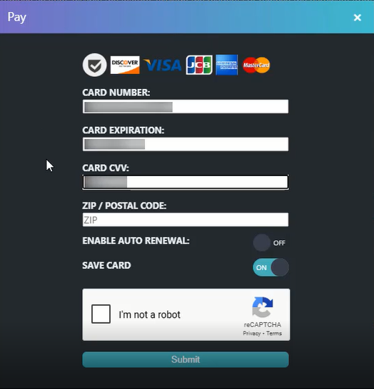 - Select if you wish to use this payment card for subscription renewal payments.