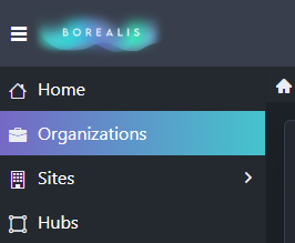 - From the menu on the left click on Organizations.