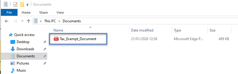 Navigate to where the tax exempt document is saved on the PC.