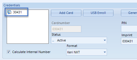 Click the Add Card button. The Cardnumber is automatically calculated and the credential is now entered into the database.