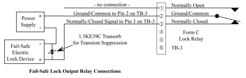 Wiring a fail-secure lock to the TB3 terminal block of the PXL controller
