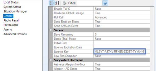 The License Key page cannot accommodate non-standard licensing such as legacy PXL-500 and legacy Entraguard hardware (typically upgrades from Doors32). It also cannot generate Doors Professional Edition licenses, multiple hardware license types or optional software modules.