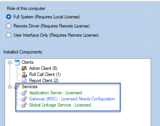 - The License Manager application will now open and the list of installed components will be on the left. The Application Server should show as Licensed and the gateway server for hardware communication should show: Licensed - Needs Configuration.