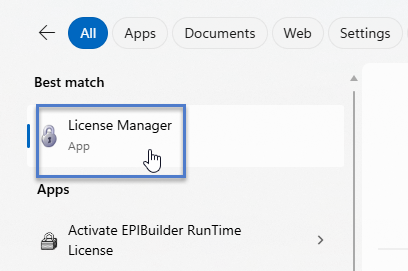 Note: The Doors.NET License Manager can also be opened via the Windows Search field, then entering 'License Manager'.