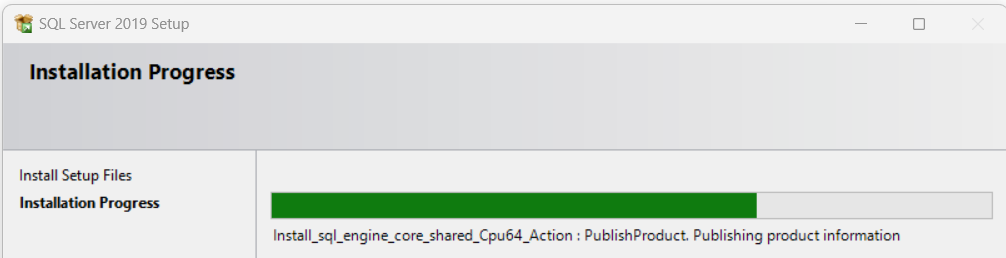 Note: as previously mentioned, if the host PC has a Solid State Drive (SSD) it should take no longer than 20 minutes to complete the installation (including the help files and SQL Express 2019).