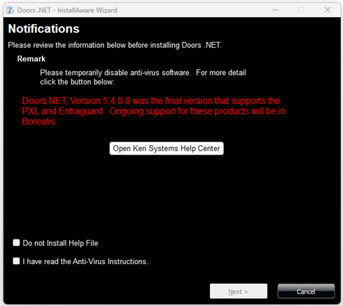1.0 Introduction When installing the Doors.NET software, Keri systems requires you to temporarily disable any anti-virus software that is running on the PC. Failure to do this can cause the software installation to fail. Once the software ...