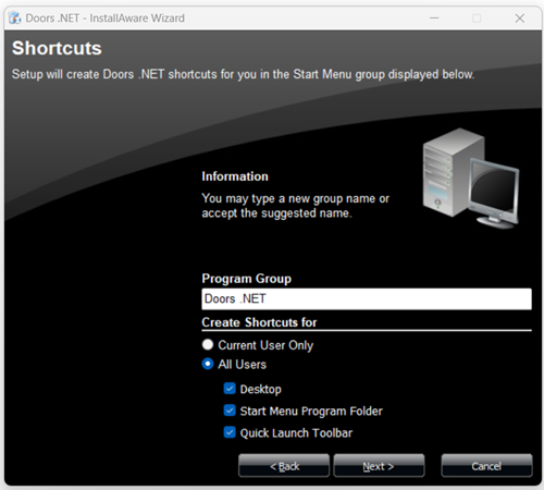- Full Installation - This will install all the required components for a standard installation of Doors.NET