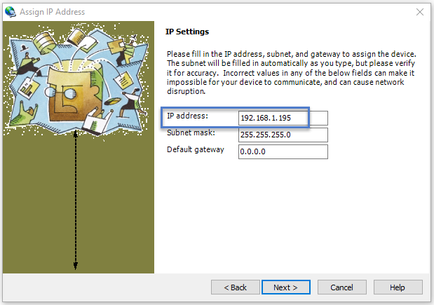 - The assign IP window will appear. Use the default option 'Assign a Specific IP address' and click NEXT.