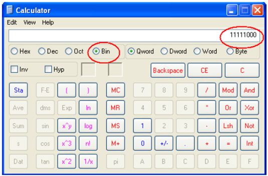 - Select Bin (Binary) and the binary conversion will take place.