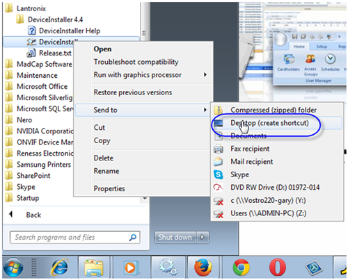 - Right-click the Device Installer application file and select Send to – Desktop (create shortcut).