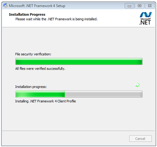 - Click install and the .NET Framework 4 Client Profile will install.