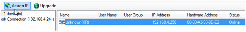 - Highlight the LAN-520 entry and click the Assign IP button.