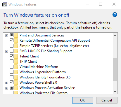 Perform the following steps to enable Telnet in Windows 10: