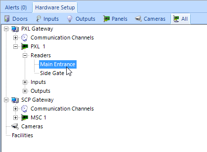 - Expand the controller in the hardware tree and locate the reader that you will sign the alert to.