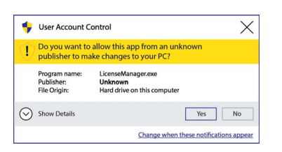 El dispositivo se ha programado para que la primera vez que se encienda, el administrador de licencias se ejecute en un modo de selección de licencia especial. Como esto se incluye como parte de la rutina de inicio del dispositivo, la ejecución de este programa requiere aprobación.